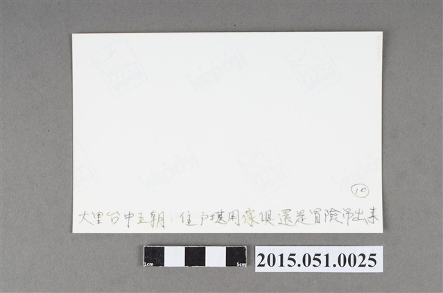 本件為4X6吋照片,柯達(Kodak)相紙沖印,影像內容為1999年9月21日921地震發生,導致臺中縣大里市(現為臺中市大里區)臺中王朝社區大樓的2棟大樓倒塌,住戶從倒塌大樓搶救還能使用的傢俱。拍攝者與拍攝日期不詳。 背面書寫有「大里台中王朝住戶堪用傢俱還是冒險吊出來⑩」說明文字。