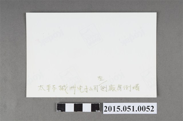 本件為4X6吋照片,柯達(Kodak)相紙沖印,影像內容為1999年9月21日921地震發生,導致位於斷層帶上的臺中縣太平市(現為臺中市太平區)房屋損毀嚴重,連生產電子零件的誠洲股份公司也難以倖免。拍攝者與拍攝日期不詳。 背面書寫有「太平市誠洲電子公司左側廠房倒塌」說明文字。