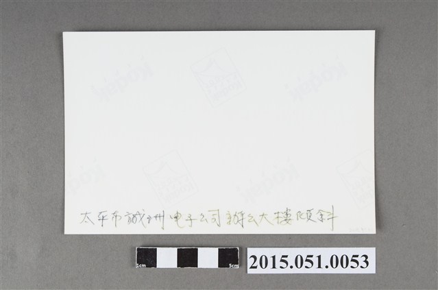 本件為4X6吋照片,柯達(Kodak)相紙沖印,影像內容為1999年9月21日921地震發生,導致位於斷層帶上的臺中縣太平市(現為臺中市太平區)房屋損毀嚴重,連生產電子零件的誠洲股份公司也難以倖免。拍攝者與拍攝日期不詳。 背面書寫有「太平市誠洲電子公司辦公大樓傾斜」說明文字。