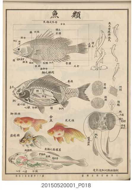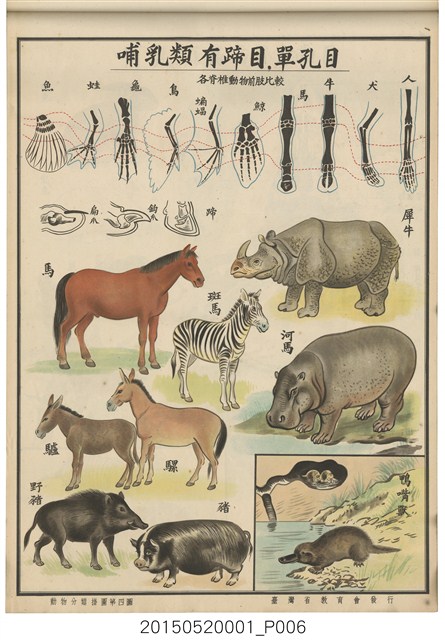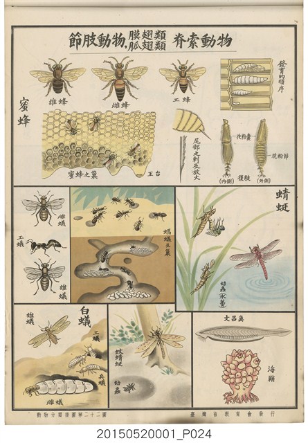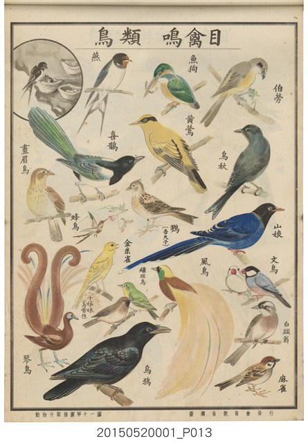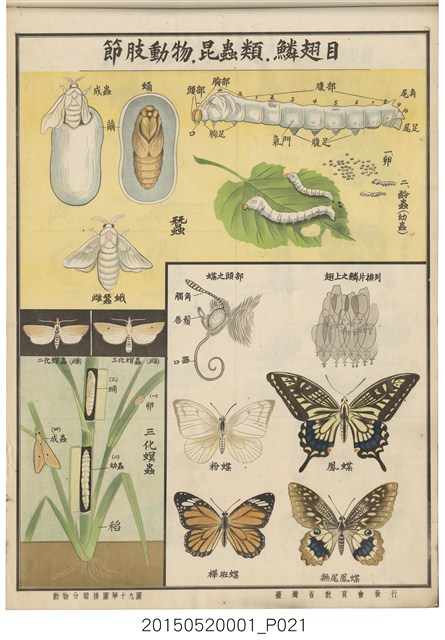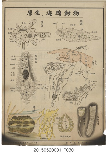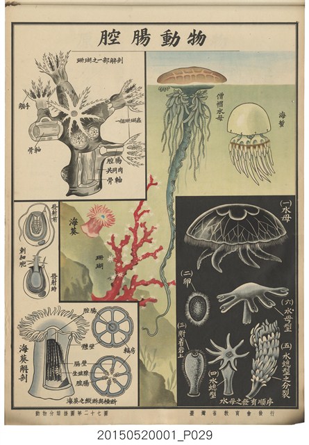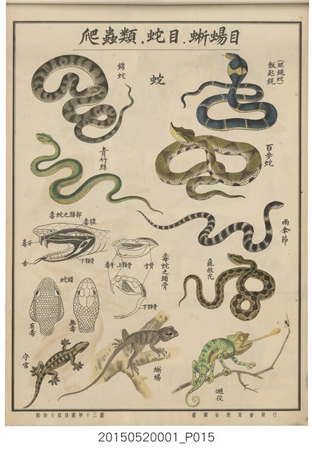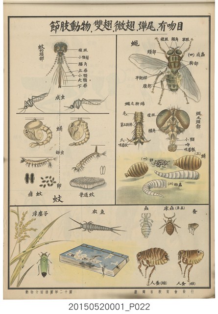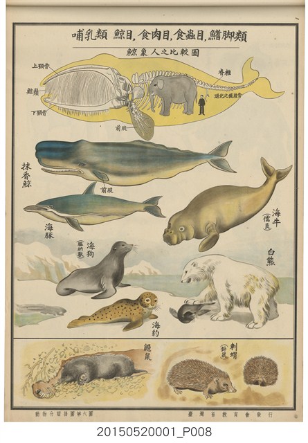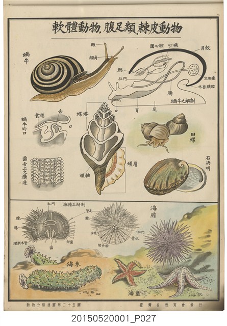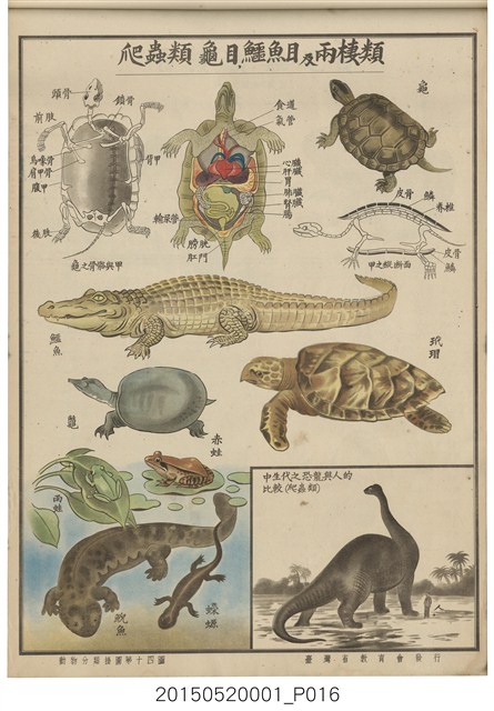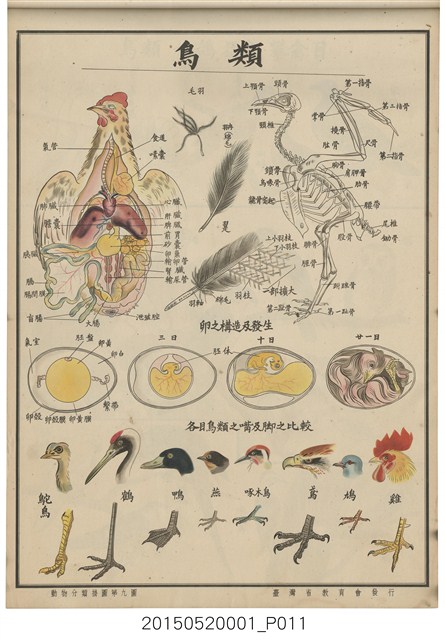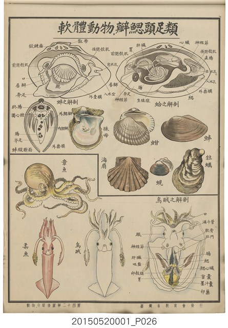 封面註明「臺灣省教育廳審訂」、「初中.高小適用」、「動物分類掛圖」、「邱瑞忠編.林玉山.盧雲生繪」,一組30頁,民國41年2月初版。除封面、索引外共計28張各動物類別繪圖,索引標示各圖與初中、國小教科書章節關聯。林玉山為台灣日治時期中的台灣代表畫家之一,以膠彩畫及水墨畫著稱,盧雲生與林玉山為師徒,兩人同出身嘉義市,也都是春萌畫院成員,製作出版掛圖期間,兩人均在臺北靜修女中任教。