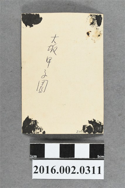 1.本件為張星賢就讀早稻田大學時期,參加全日本大專學生對抗田徑賽大會時,與友人合影之黑白照片,約5.5x8公分直幅,留白邊,由彰興賢四子張昭平捐贈給臺灣歷史博物館。拍攝地點為日本大阪甲子園球場,合影的三人皆為男性,張星賢位於中央,穿著白色上衣與黑色長褲,身旁的友人分別穿著淺色及深色的成套西裝,其中一人頭上帶有帽子。三人並肩站立於木棧板上,身後的球場上依稀可見兩名運動員,球場外圍種有一排樹木。照片背面四角有從相簿撕下的黑色黏貼痕跡,中間寫著「大阪甲子園」等字。2.張星賢(1910-1989)為臺灣田徑選手,出生於日治時期的臺中廳,曾留學於日本早稻田大學,1932年代表日本參與洛杉磯奧運,為臺灣首位奧運選手,1948年回臺灣創立田徑協會,擔任首屆臺灣省田徑協會會長,並擔任總幹事達二十餘年,以教練身份培訓、指導新一代臺灣田徑選手,例如陳英郎、楊傳廣、紀政等人。