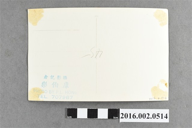 張星賢先生於1948年任職台灣省合作金庫並擔任合庫體育會總幹事,至六十五歲退休為止。背面印製成明信片格式,蓋章註明"攝影記者 康伯樂"。