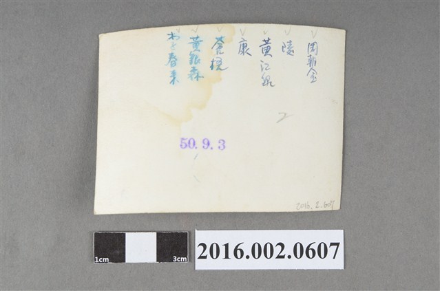 攝於民國50年9月3日。張星賢先生於1948年任職台灣省合作金庫並擔任合庫體育會總幹事,至六十五歲退休為止。