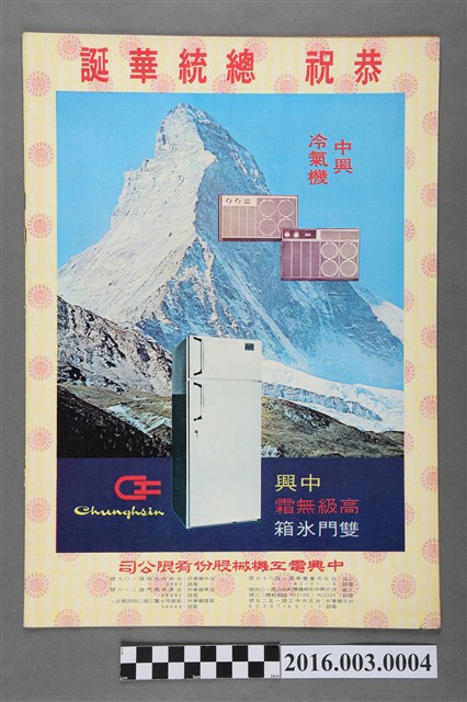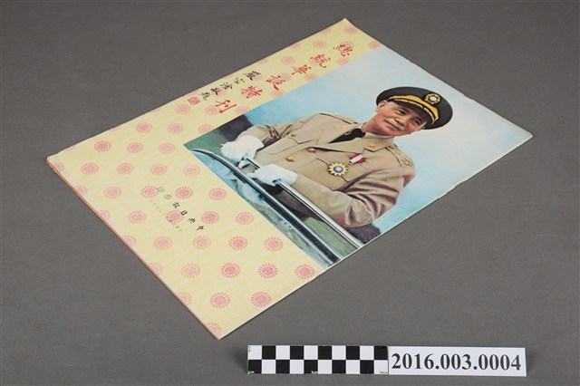 總統戴帽別勳章著軍服站立於車上/恭祝 總統華誕-總統參觀工廠/廣告-勝利型轎車 /廣告-臺灣土地銀行,國華化學工業股份有限公司 恭祝 總統八秩晉一華誕,大台北地區瓦斯公司董事長 吳火獅謹賀 恭祝 總統萬歲,新竹玻璃製造礦股份有限公司 總統萬歲。