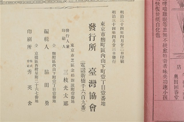「臺灣協會」成立於1898年4月,其所成立之目的為組織一個有規模的「殖民研究」團體,並隨即於1898年10月發行機關刊物 《台灣協會會報》。