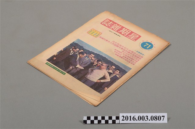 民國63年5月25日《星期雜誌》第71期的要目為蔣院長就職兩年的作風和作為/從蔣院長所講的故事中體認作人作事的道理/戴斯亭與未來的法國/劉林下場陰影縈繞心頭不散,周匪焉得不病/有志青年進軍校/訪談與學/楊英風與他的雕塑藝術