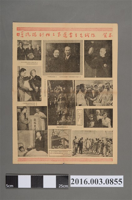 49年3月23日《台灣新生報》內容以介紹陳誠的功績為主,包括,最近六年以來 陳副總統言行錄、陳副總統與臺灣 一風/引言/實施土地改革 改善農民生活/決定改革幣制 安穩金融物價/管制人口出入 維持地方治安/實施地方自治 主張人民至上/改進各級農會 健全農民團體/建設石門水庫 增進水利設施/關懷八七水災 推動救濟重建/處理軍用土地 保障人民權益/結語。