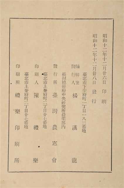 臺灣農窓會出版《臺彎農會‧ 會報》昭和12年12月28日號
