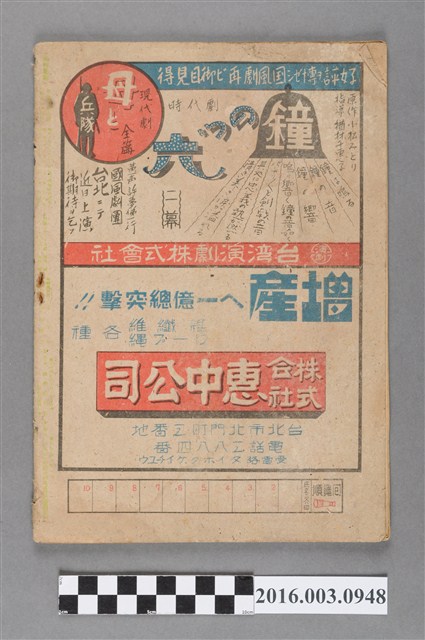 1.此物件為《台新》旬刊第二年第八號,為三月中旬號,於昭和20年(1945)3月10日發行,編輯兼發行人為辻平一,發行所為臺灣新報社,此刊內容主要以戰爭時事報導為主,此次內容有「戰爭はどうして勝つか」、「乃木文學餘談」」、「初等教育はかく進展した」、「通信之注意」……等篇章。