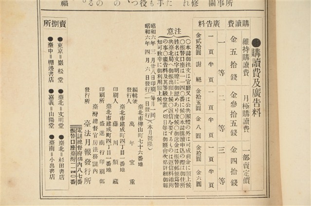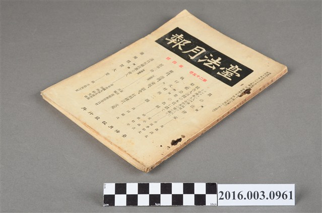 昭和6年4月6日出版的《台法月報》第25卷第4號內容大致包括,マルサスの人口論に利用せられたる臺灣蕃人の奇習其の他に就て/被告人訊問の本質に就て/祭祀公業の名稱/執行交付與二題/禁酒法の無效判決/彙報/辭令/受贈書目/統計/臺法俳壇/質疑應答/臺法月報質疑用紙/判例研究 土橋友四郎 臺法月報/附錄[臺灣慣習大要] 手島兵次郎。《台法月報》於明治38年6月發行,至明治39年11月共發行了17冊,爾後更名為《法院院報》,發行44冊,在明治44年又再度恢復《台法月報》之名,至昭和18年共發行443冊。《台法月