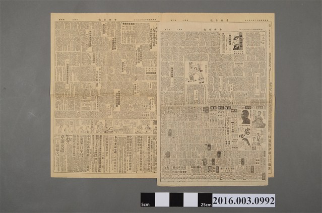 此份文物為1953年6月12日第一版的《中央日報》,內容主要為當時世界局勢,如〈抵制共匪入聯合國 美不惜使用否決權〉、〈韓國人民奔走呼號 反對妥協停戰〉、〈韓拒絕停戰建議 國會通過決議〉等。下方是則有醫藥廣告、結婚啟事、與各單位重要公告。