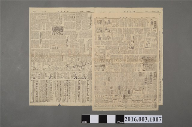 此份文物為1953年8月3日第一版的《中央日報》,內容反映了當時台灣最關注的事:即與對岸的關係與共產黨在世界的發展。如大標即為〈美通知十五個盟國參戰軍隊繼續留韓〉,不僅注意對岸的發展,也擴大眼界;其餘次標如〈聯合國必須在遠東保持充分實力〉、〈反共抗俄 宣傳列車出發〉等,也都表達相同概念。