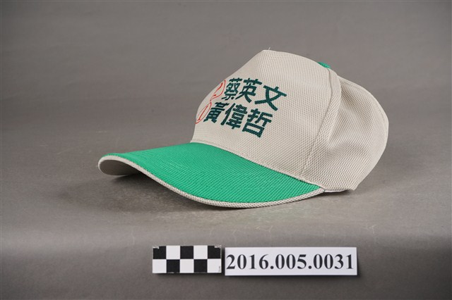 2016年第9屆全國區域立委選舉,臺南市立委參選人黃偉哲製作之宣傳帽,帽上印有1號黃偉哲字樣,因為立委選舉與總統大選合併舉行,因此同黨總統參選人蔡英文也併同印在具有宣傳性質之帽上。此類宣傳帽通常大量發放給選民,具有實用性,也具有宣傳功能。