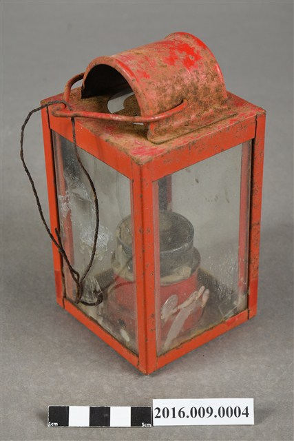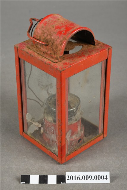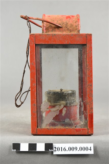 1.為捐贈者20幾歲時於臺南市向姐姐購買。 2.油燈的瓶身是玻璃與鐵片製作,在鐵製底座上裝一個燈芯柱,使用蠟燭照明,能掛在牆上、桌上,也能拿著走路行進照明。