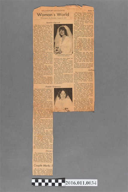 該物件為捐贈者林義雄先生於1977年赴美參加第三十一屆威廉波特少棒賽時,於當地取得的報紙。這份報紙名為"The Williamsport Sun-Gazette",是美國賓夕法尼亞州(Pennsylvania)威廉波特市自1801年開始發行的當地早報。這份早報為美國現今仍持續發行的古老報紙之一。