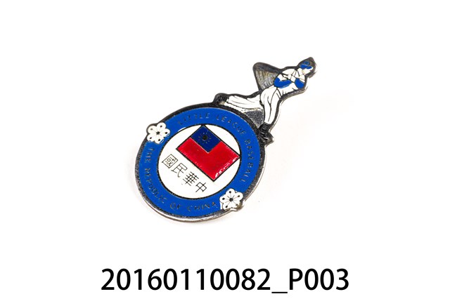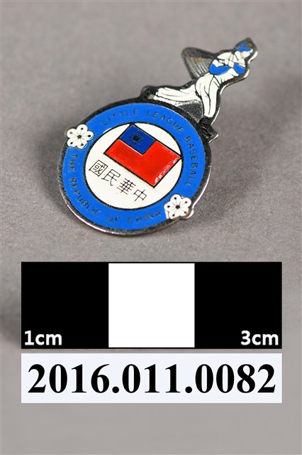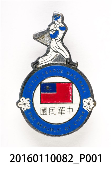 該物件為捐贈者林義雄先生於1977年赴美參與第三十一屆威廉波特少棒賽時,中華代表隊所配帶的胸章。胸章以藍、白二色為主,上方有一擊球的球員,下方白色圓形圖樣中央有中華民國國旗,左右兩邊各有一朵中華民國之國花──梅花。國旗下方有「中華民國」四字,而在此之上下方分別有一排弧形英文字:「LITTLE LEAGUE BASEBALL」、「REPUBLIC OF CHINA」。