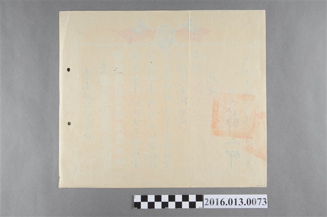本文物為1950年(民國39年)台南縣政府頒發給陳文炎之獎狀,獎勵其任虎尾農業職業學校指導員於37學年度考核中獲一等成績。
