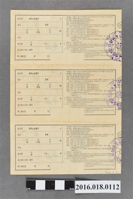 基本發行張數為六十萬張,橫式設計,國民生活規範(衣的方面):「帽子不得歪戴,髮式、服裝,不得蓬頭怪樣。」,「愛國獎券」,「中華民國五十九年二月五日開獎」,「臺灣省政府委託臺灣銀行發行」,「新臺幣伍元」,「第544期」。本件三聯一同購買,因此有甲、乙、丙聯、編號分別為A179044、B179044、C179044。
