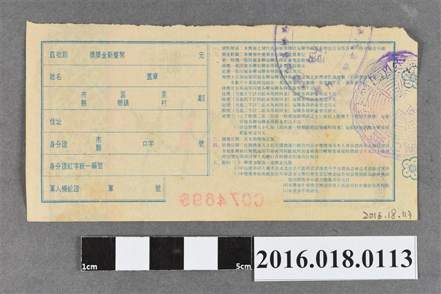 基本發行張數為六十萬張,橫式設計,慶祝兒童節圖樣,「中華民國五十九年四月五日開獎」,「丙聯」圓框,「臺灣省政府委託臺灣銀行發行」,「新臺幣伍圓」,「愛國獎券」,下列「第550期」編號「C074898」。 背後印有?福、西門路等字。