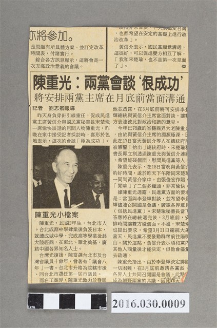 此為標題「絕食諫諍」報紙,內容為彩印的絕食抗議圖,中央為絕食抗議者,皆帶頭巾,且脖子掛紅毛巾,身披橘雨衣。圖片上方與下方,有當時野百合運動的抗議布條,分別是「學生絕食」與「抗議」。圖片最下面有小字附註說明:「中正紀念堂廣場的學生們,昨天提升抗爭程度,10多位學生昨天開始絕食,希望施加更大壓力,迫使政府改革。【本報攝影組】」