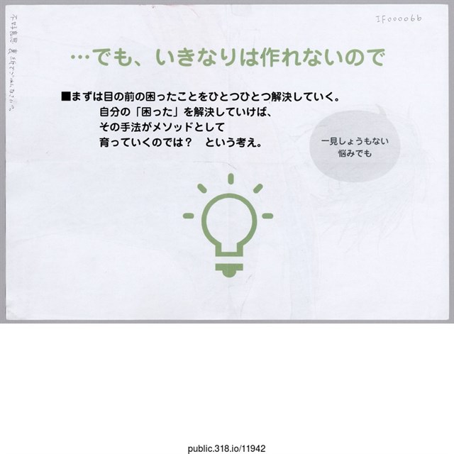 1.內容:…でも、いきないは作れないので……という考え2.中研院原件典藏編碼:IF000063.中研院識別號:119424.中研院關係藏品-關聯:5.中研院關係藏品-整體:6.提供者: