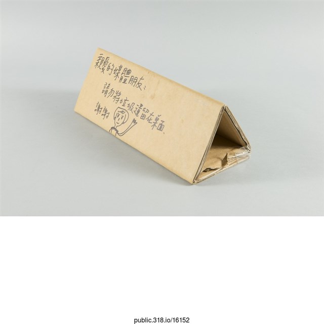 1.內容:親愛的媒體朋友:請勿將垃圾遺留在桌面,謝謝。2.中研院原件典藏編碼:II000063.中研院識別號:161524.中研院關係藏品-關聯:5.中研院關係藏品-整體:6.提供者: