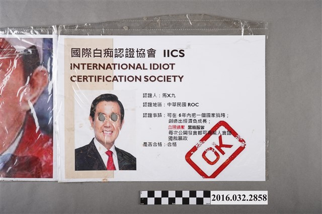 1.內容:國際白癡認證協會IICS等及馬英九正面像2.中研院原件典藏編碼:OE008133.中研院識別號:179324.中研院關係藏品-關聯:182745.中研院關係藏品-整體:6.提供者:
