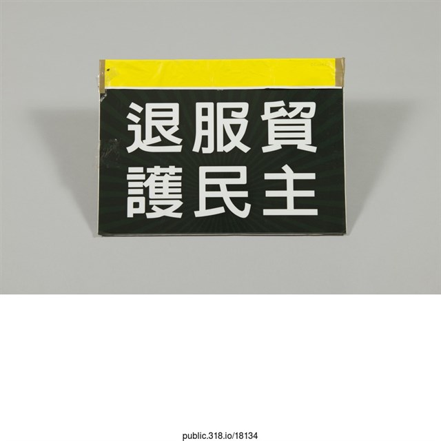 1.內容:退服貿 護民主\r\n此時不抗議 以後做奴隸2.中研院原件典藏編碼:OE006533.中研院識別號:181344.中研院關係藏品-關聯:5.中研院關係藏品-整體:6.提供者: