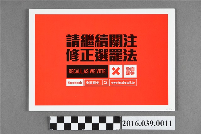 此為粉絲團全面罷免Total Recall所發行大聲公公仔說明書,除去封面與封底,共有7頁內頁,封面是公仔的大聲公樣貌,封底則是全面罷免得相關網址,並有一行字:「請繼續關注修正選罷法」。內頁主要為一頁說明書與各個組裝部件,總共分為六步驟,使用工具為美工刀與雙面膠。