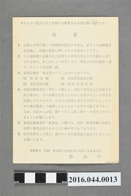 本物件為申請確認明信片,為本多特許事務所協助田川清先生申請變更商標所有人,而特許廳寄送此明信片作為確認接受申請之通知,內容載有申請日期及號碼。