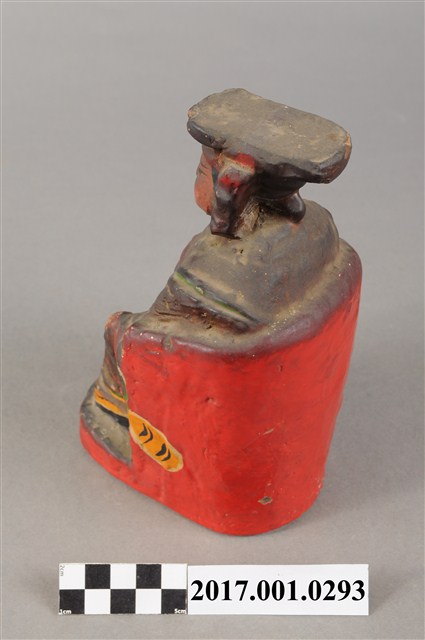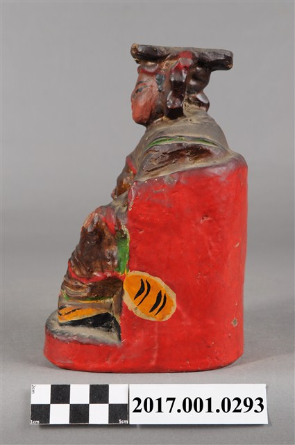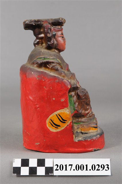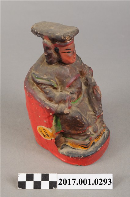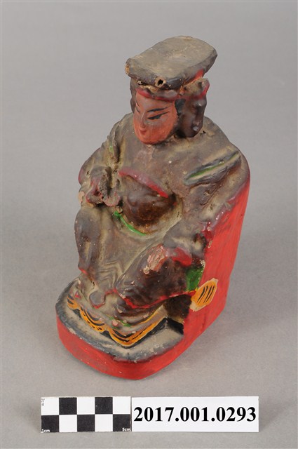 1.本件媽祖像為磚雕燒製,表面施以彩繪粧佛而成。媽祖臉色粉嫩紅唇。媽祖頭戴冕冠,身穿蟒袍,腹下束腰帶,胸前有看帶,腹部有蟠龍雕飾。雙肘倚靠於圈背椅扶手上,右手持如意,左手平放左膝。神像作如意體,端坐於圈背椅,雙足踏於踏几上,踏几有虎皮裝飾。