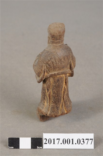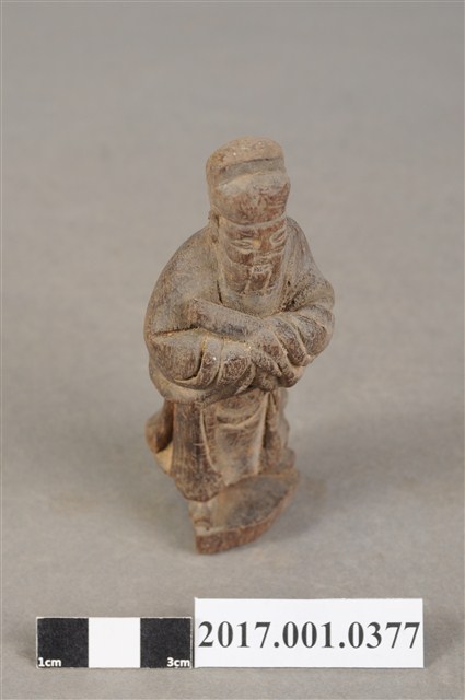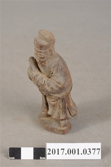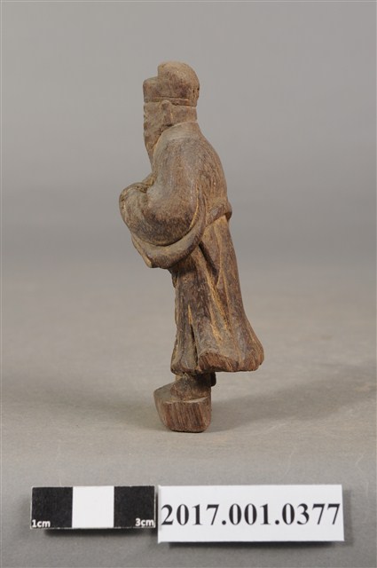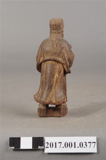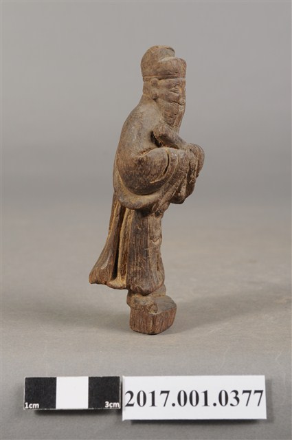 1.本件文判官像為木雕製成,粧佛已除去。文判官為立姿,頭戴方巾,面容慈祥,蓄有長髯,姿態優雅,身穿長袍,雙手捧持書卷,衣袍線條流暢。