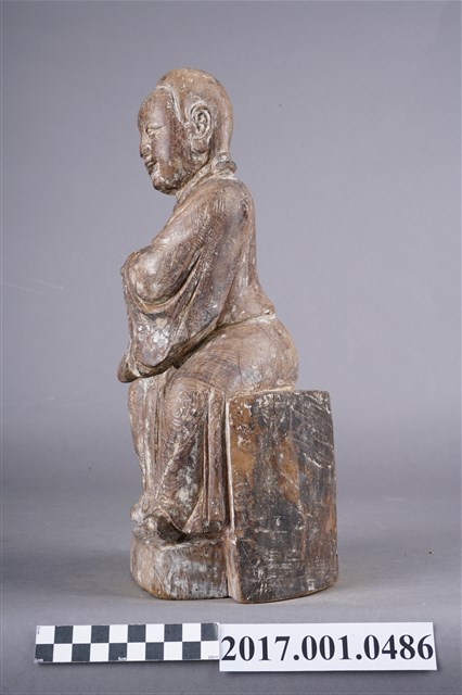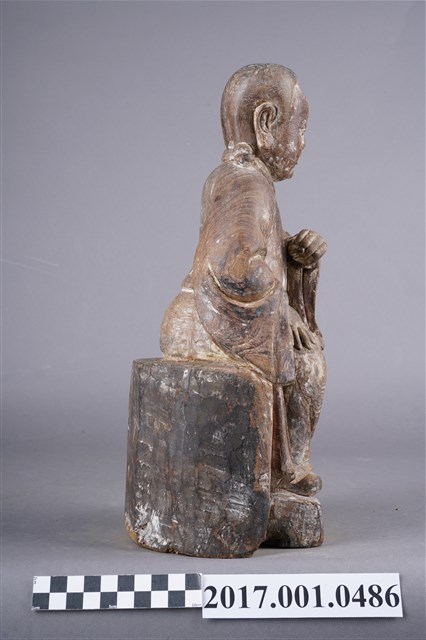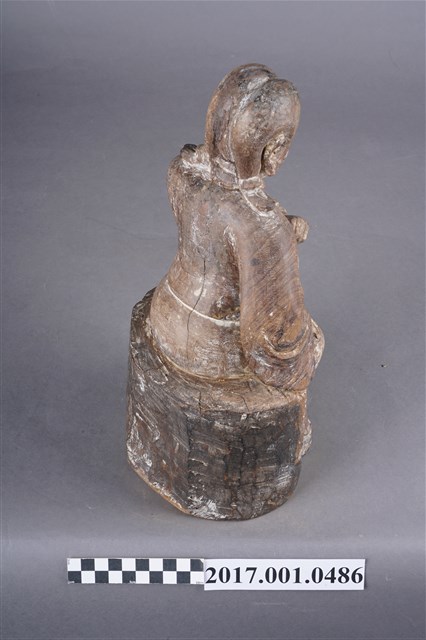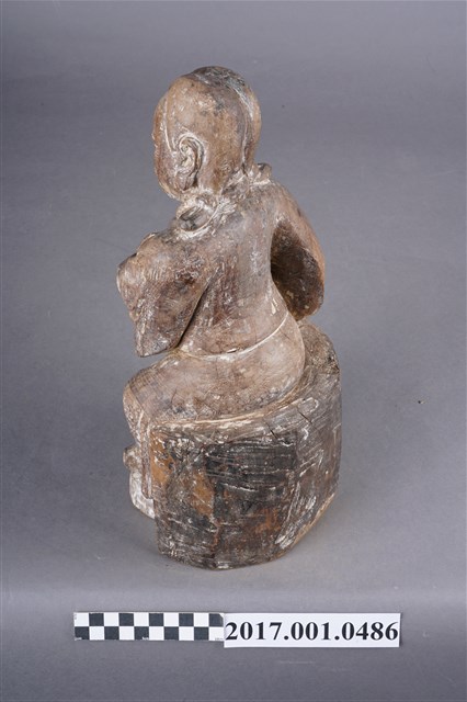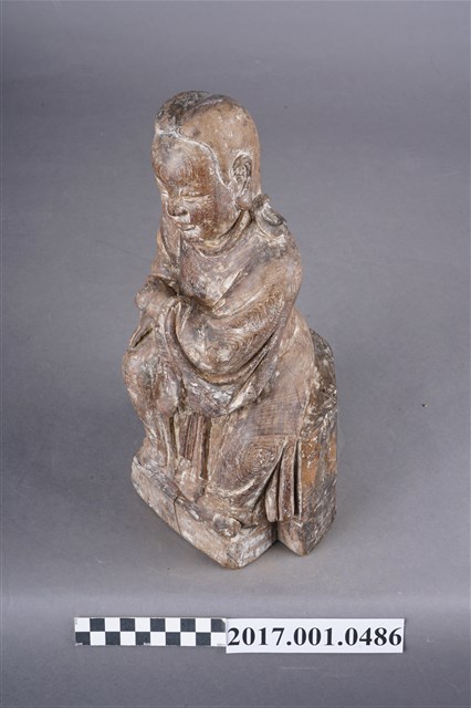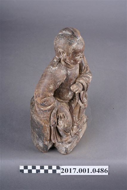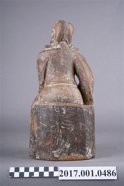 1.本件木雕田都元帥像採坐姿,端坐於半圓臺座上,表面粧佛已除去,鼻尖磨損。神像作少年面貌,頭部偏向右側,無冠,高額,雙眼圓睜,張口,頭髮於腦後分兩股束起,垂於左右肩上。身著圓領袍服,腰間繫有腰帶,尾端垂於下襬中央,左手小臂向內平舉,握拳,右手扶於右膝之上。雙足平踏於座前踏几上,僅露出鞋尖。