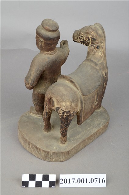2.馬使爺為馬夫之尊稱,多配祀於王爺、關公等武神,民間信仰以王爺具有奉玉旨代天巡狩之職,賦予王爵地位並領有兵馬,並多有王馬為坐騎,故配祀馬夫作牽馬狀,民間尊稱為馬使爺,多作為王爺的侍從,並未有獨立的名諱,其裝束多作古代差役服飾。(富俐崴文化事業有限公司/謝宗榮計畫主持)