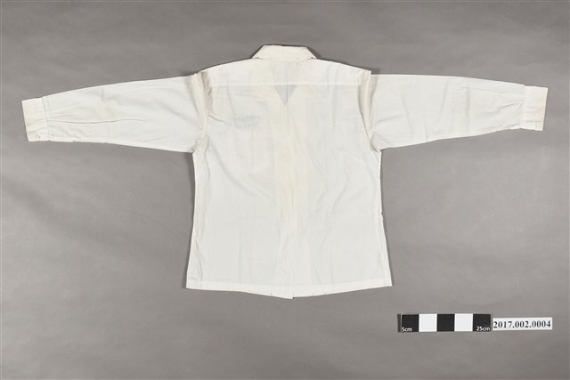 正面繡有由右至左之「中山女高」和「70546義」字樣,標誌出學校學號與班級,兩側並各有3條橫槓,學號第1碼「7」表示該生於1967年入學,橫槓數代表年級,從衣服內裡可看出應為不同年級時加繡。