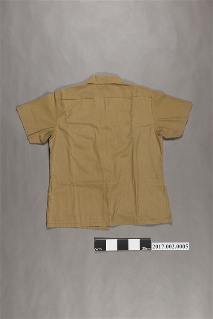 林欣宜小姐就讀臺北市立中山女子高級中學(1967~1969)時穿著之XL尺寸夏季軍訓服,與粉色短袖制服的差異為口袋樣式,此件上衣兩個口袋皆有鈕扣,會搭配軍訓窄裙穿著。在1967~1969年期間,中山女高仍有必須穿著軍訓服之場合,非最早取消軍訓服規定之學校。