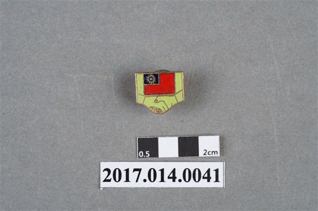 草綠色雙手交握與青天白日滿地紅國旗徽章。