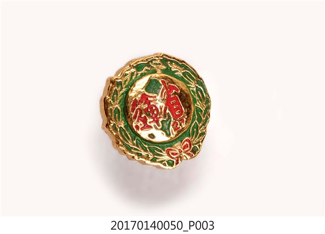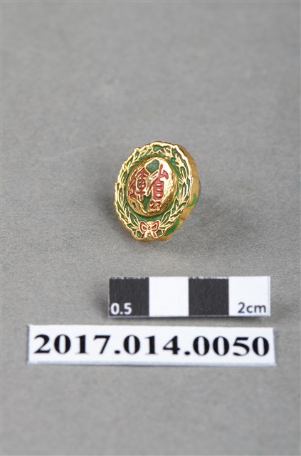 1. 本件為民國61年第27屆臺灣省運動會紀念章。綠底金色圓形徽章,以臺灣省運動會會旗為主設計,外緣以桂冠環環繞,中央為綠色臺灣島圖與紅色「省運 27」字樣。