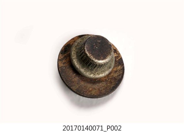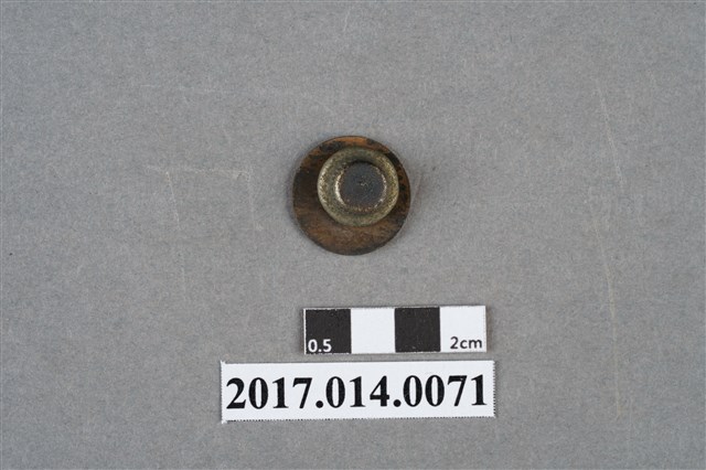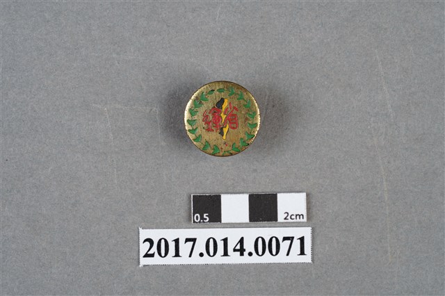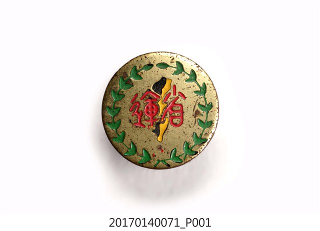 1. 本件為民國60年第26屆臺灣省運動會紀念章。金色圓形徽章,外緣以綠色桂冠環圍繞,中央有黃色臺灣島圖及紅色「省運」字樣,臺灣島下原有數字「26」,但表漆已脫落模糊。
