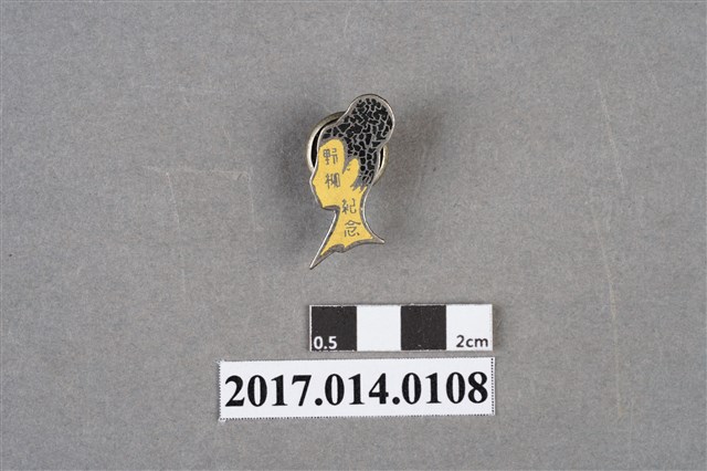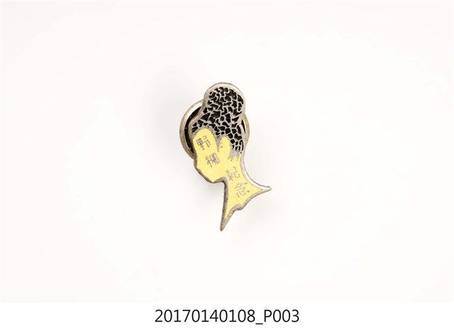 黑黃色野柳女王頭型紀念章,黃色女王頭面步有「野柳紀念」銀色字樣。