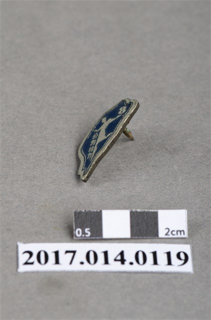 1. 第8屆臺灣省公路接力賽紀念章,銀藍色臺灣島形紀念章,中央有一銀色跑者圖案及「8 公路接力」字樣。