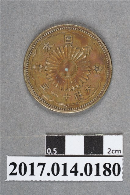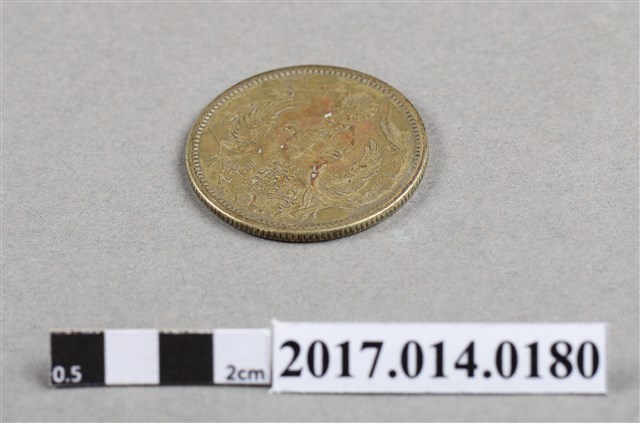 1. 本件為捐贈者第一批捐贈紅眠床 (2015.029.0001) 原床下抽屜中發現之大量捐贈者母親收藏之日本錢幣,捐贈者捐贈若干面貨幣供本館典藏。