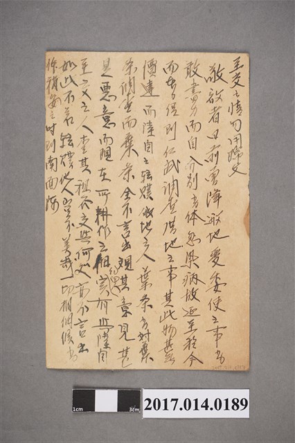 2. 明信片背面書寫漢文:「至交之情勿用錦文 敬啟者日前曾降敝地受委使之事劣敢盡力而自分別劣体忽染病故延至於今而???即仁武調查借地之事其此物甚無價達而陸自之轉贌敝地之人葉条劣對葉条調查而葉条全不言出觀其意見甚是惡意而現在所耕作之佃約四人實有興陸自至交之人壹其租谷交與何處亦不言出如此不若轉贌他人豈不美哉一切相佃候劣作稍安之時即南面陳」。