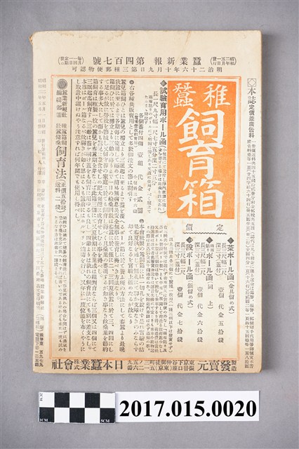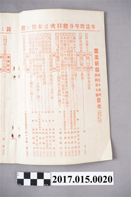 本物件為昭和二年五月發行的蠶業新報,蠶業新報內介紹:口論、社說、論說、?英、講義、經?、調查、雜錄、科學界新音、世說絹?、統計、文苑、新刊批評、新發明農蠶器具、問答、雜報,介紹各種蠶業動態與產業新知,。●外山博士十年祭●繭層布合表示器●蠶業調查會設置に対する希望●繭層のチロシン定量法に就て 西田孝太郎●支歐一代新黃繭種飼育の要訣に就て 巿井大?●粉炭完全燃燒法に就て 福田裏治●本多博士の今後に於ける蠶系業者の覺悟を読む 古屋久昌●系價不況に際し養蠶家は如何に經營すべきか 名倉琇策●?????新黃繭種の特性と飼育法の要點に就て 鹽