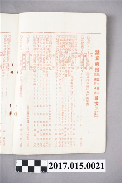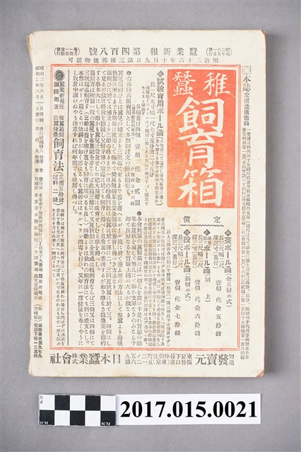 本物件為昭和二年六月發行的蠶業新報,蠶業新報內介紹:口論、社說、論說、?英、講義、經?、調查、雜錄、科學界新音、世說絹?、統計、文苑、新刊批評、新發明農蠶器具、問答、雜報,介紹各種蠶業動態與產業新知,。●南洋スマトラの情景 ●磯村式速成多收穫桑園●春蠶繭は如何に處置すべきか●桑葉の含水量 中根信一●鹽酸孵化法施行上蠶卵の一危險時期に就て 小針喜三郎●偏重苛酷なる蠶種の所得稅 小高圭作●蠶室八疊室で收繭百有餘貫 久保倉次郎●蠶室內の一酸化炭化素恐ろべきか 三森吉彥●製系業を變態性產業より脫出せしめよ 村島義川●養蠶法革命の??と