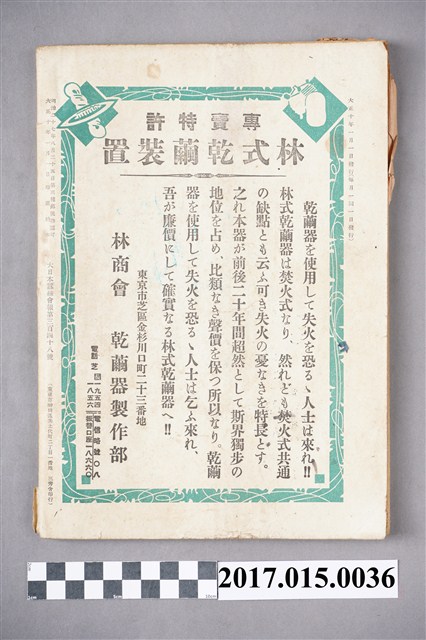本物件為大正十年一月發行的大日本蠶絲會報,目錄摘要:最近十年上一?生絲價格???寫?表/年?の??/時代の???伴ふ蠶絲業者の??/?????して?を?貯貨する事に就て/蠶絲經營の??/??蠶絲????/製絲實驗所設置必要/桑?問題の二三に就て/今後の桑園經營の一?/再び蠶の發????に就て/化?の既に?れる奇現象に就て/家蠶の消化?素に関する研究/可憐なる農民の為め?蠶會社及中央會の責任ある聲明を??/本年の養蠶に就て/??製種法/?日更??統計界/??本邦の養蠶業者を如何に??せんとする乎/養蠶と盲目者/漫畫 一年の?は元旦にある/九年蠶業?