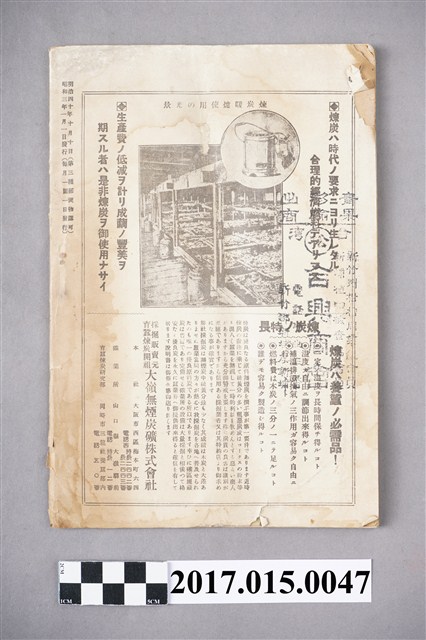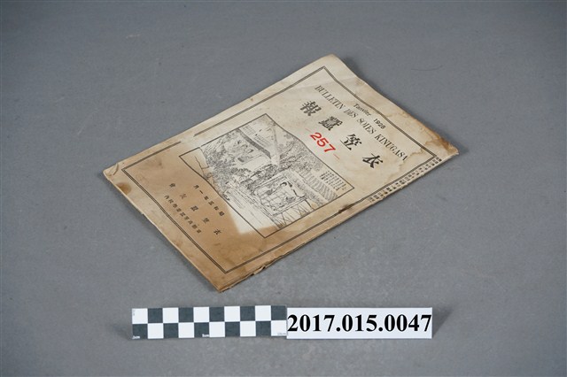 此為日治時期的書報,其頁數不多大約四十幾頁,保存狀況還算可以,只是有些許汙漬,封面上印著「衣笠蠶報」(Tanvier 1928 -BULLETIN DES SOIES KINUGASA),發行時間為昭和三年一月,此書報目錄分成學藝、說、抄錄、會的記事,文中的標題包含有:短時間交尾と受精との關係、人造絹絲の發達こ帝國蠶絲業の將來等,並詳細記錄下試驗方法及試驗的結果於書中,如春期成績(試驗時間為六月二十日至六月二十八日),時間大約為一週期間分別記錄下蠶的交尾時刻,找出最容易受精的日期與方式,使蠶絲產量大增,有