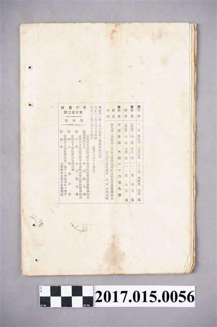 此為日治時期的書報,其頁數不多大約四十幾頁,封面上印著「衣笠蠶報」(JUNE NO.202),發行時間為大正十二年六月,此月份目錄為物價調節こ國民思潮(下)、發蟻檢查用丼浸酸用產卵台紙の考案、生絲專買制度こ養蟻保險制度こ、朝鮮水原ふり(その一)、衣笠花壇。由衣笠蠶友會所發行,是為京都高等蠶業學校所編寫相關內容或研發技術的紀錄等,此書屬與京都高等蠶業學校的校友會誌最早於西元1906以「衣笠蠶友會報」的名稱創刊,於西元1921改為現在的名稱,對於日本研究蠶業領域有相當大的幫助,最終於西元1940時停刊,至今依