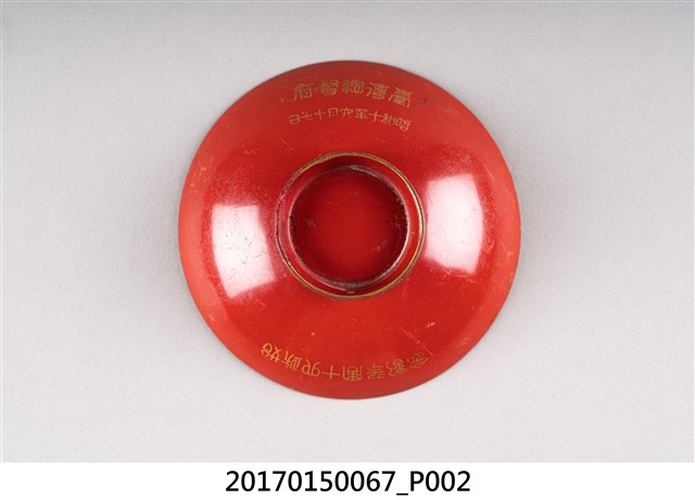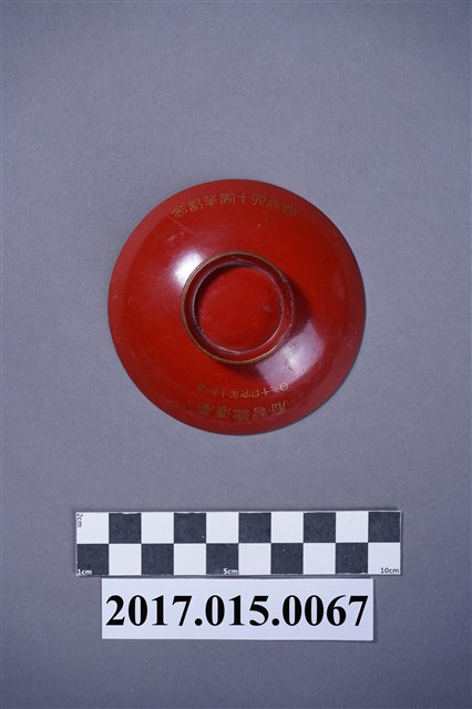 1935年,此年為日本殖民台灣四十年,臺灣總督府舉辦「始政四十周年博覽會」活動,此年也有相關紀念物品的製作,此漆杯材質為木材,在其表面上一層漆以用防水,用來贈與他人的紀念物品。