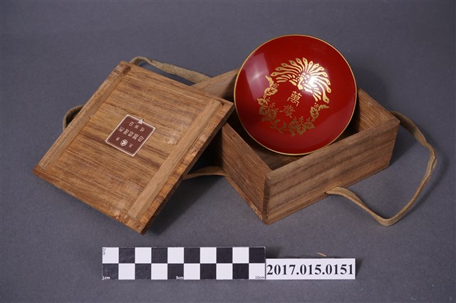 本物件為大正4年11月大典的御賜饌紀念漆杯組。臺灣早期移民多來自福建,當時民間所有的漆器大多是傳統的精緻漆器,由交易或唐山師傅來台製作且多應用於生活中的習俗或宗教用品,日本時代後,由於日本人的生活與漆器密不可分,因此有計畫的在臺培植漆工事業,引進漆樹、製作推廣漆器,設立工藝傳習所使臺灣漆器在日本時代開始發展,甚至出現具有臺灣特色的蓬萊塗。